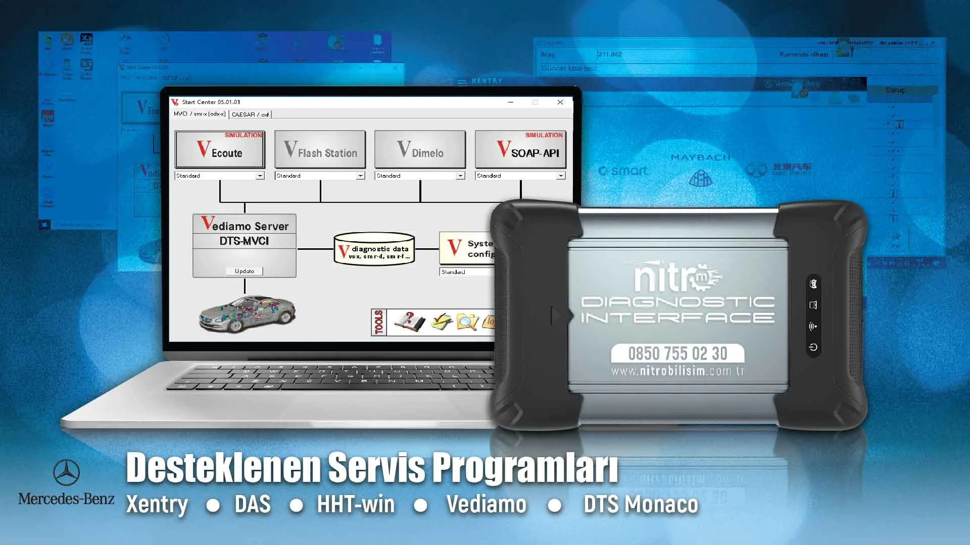 Mercedes Benz Xentry, Das , Hht- win , Vediamo ve Dts Monaco Programlarını desteklemektedir. Mercedes Xentry – Das Programları ile online ve offline programlama gerçekleştirebilirsiniz.