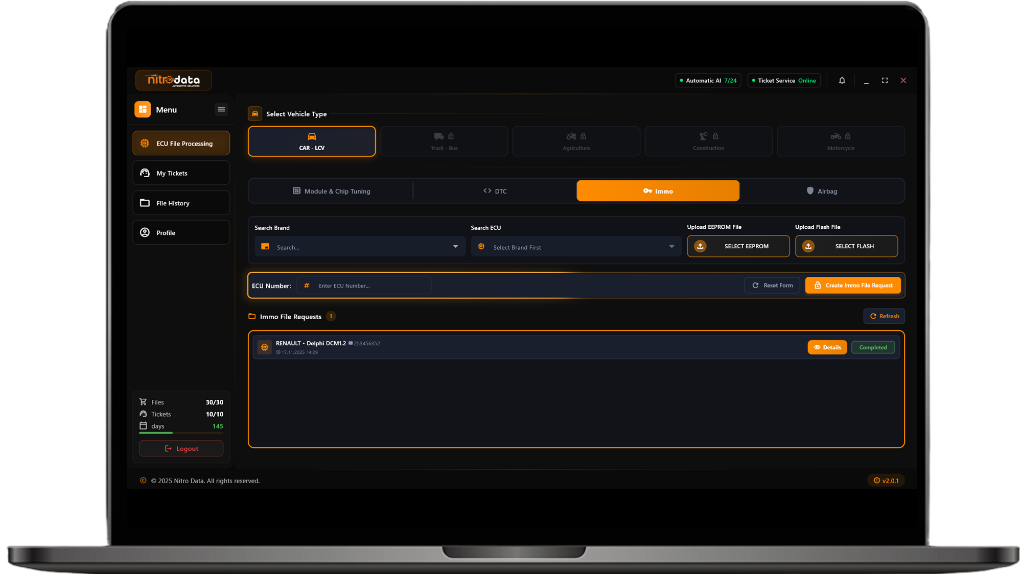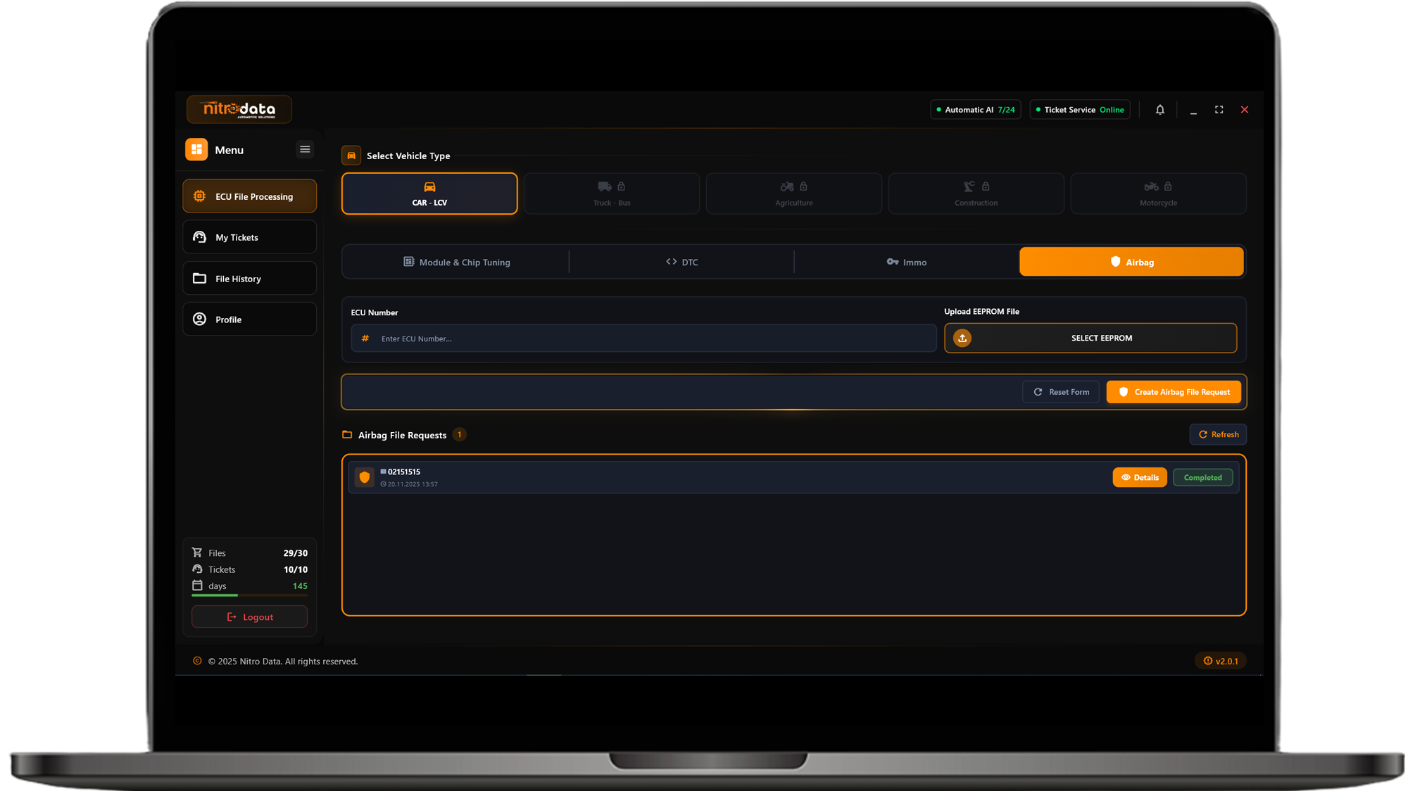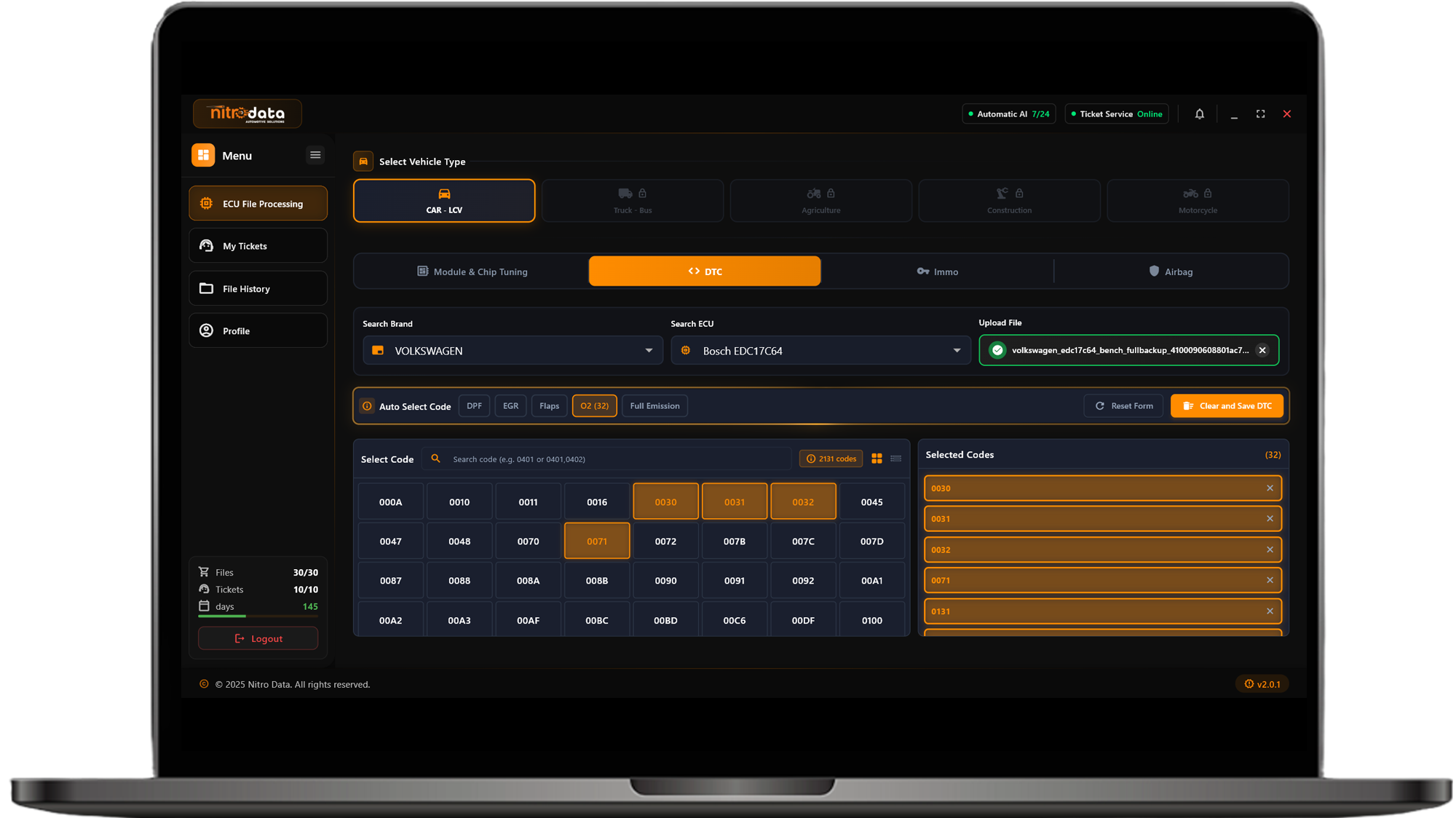 NitroData is an innovative automotive software that analyzes ECU files quickly and accurately with artificial intelligence technology. The system automatically processes your uploaded file by matching it with its rich database and provides professional quality solutions within seconds.