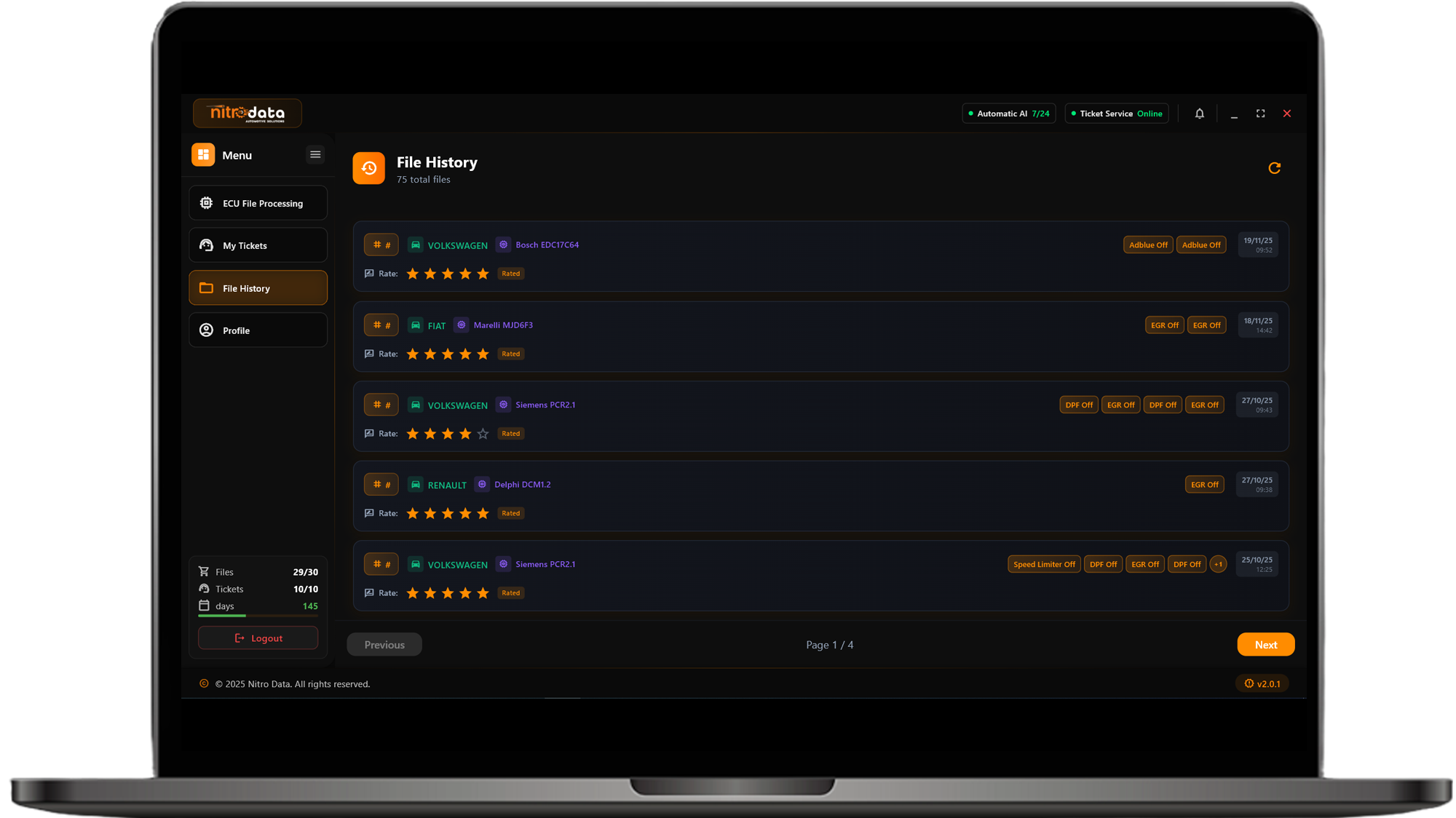 NitroData is a professional software platform powered by artificial intelligence that offers the most advanced chip tuning solutions in the automotive world. With its rich database containing over 200,000 files, it provides an unparalleled experience in vehicle optimization.