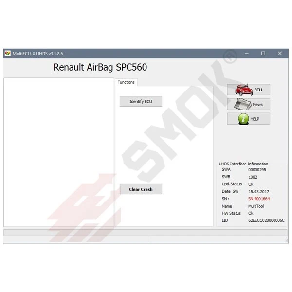 - Dacia SPC560 tanımlama, durum Crash, açık Crash OBD
