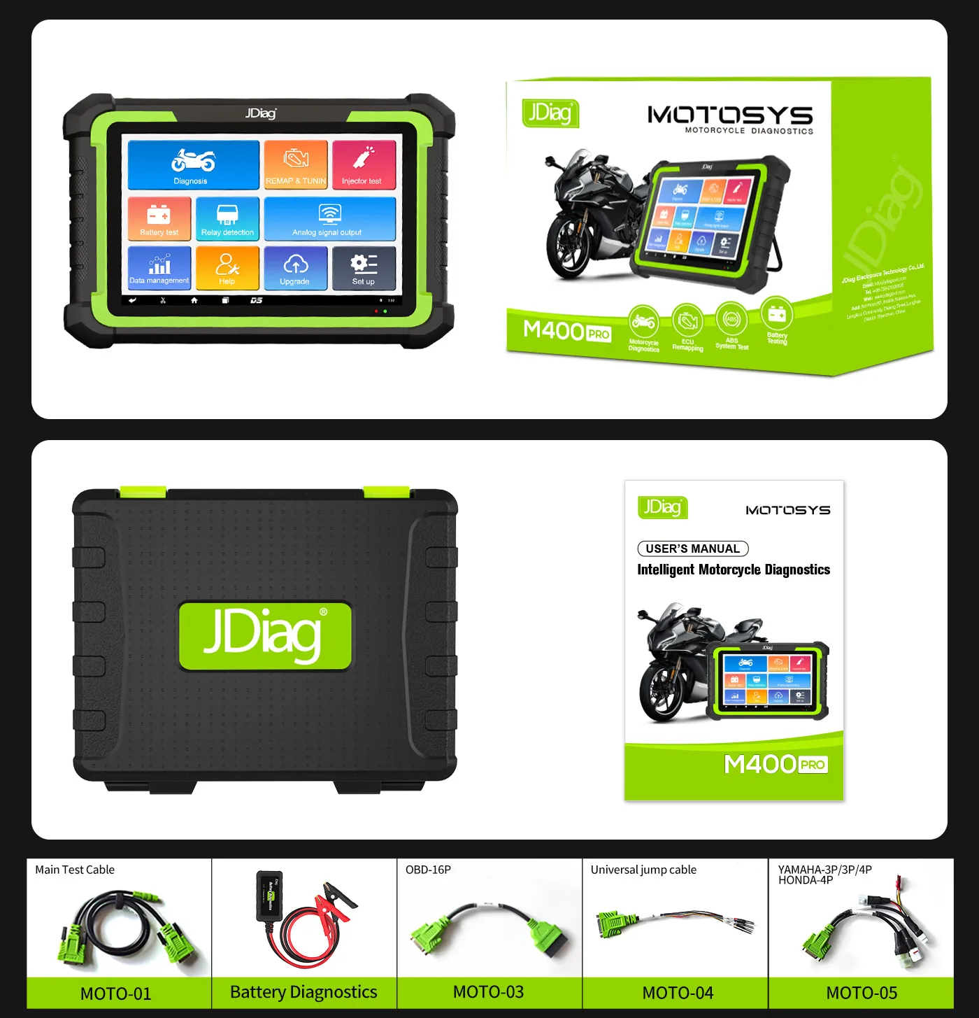 JDiag M400PRO, yeni nesil Android akıllı sistem ve yüksek hızlı işlemci mimarisiyle tasarlanmış, profesyonel servis kullanımına yönelik bir motosiklet teşhis tabletidir. 8 inç kapasitif dokunmatik ekranı sayesinde menüler hızlı erişilir, veriler net görüntülenir ve kullanım daha pratiktir.